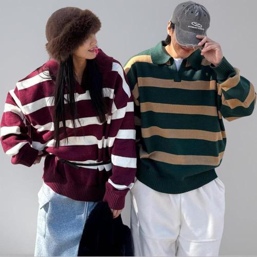 커먼 단추 오버핏 루즈 데일리 남여공용 커플 레이어드 빅사이즈 헨리넥 니트
