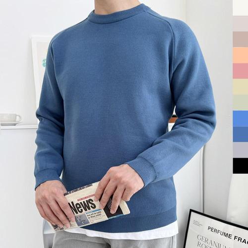 남자 니트 빅사이즈 긴팔 티셔츠 스판 라운드 스웨터