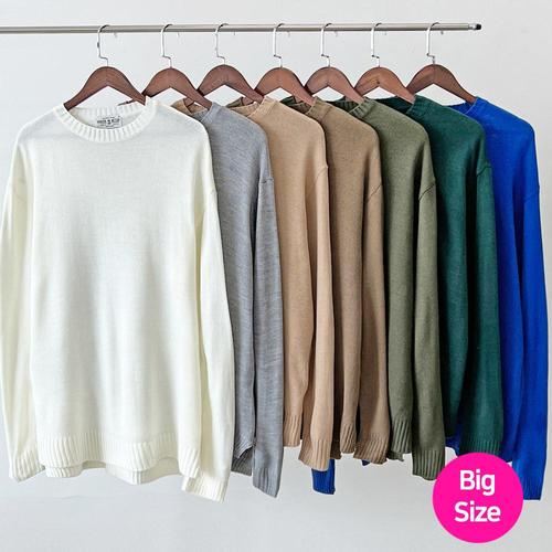 [1+1] 2장 묶음 남성용 겨울 오버핏 기모 라운드 니트 빅사이즈 100-115 8컬러 (4478-2)