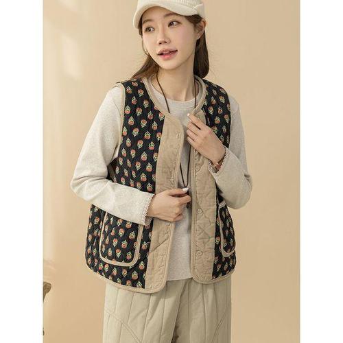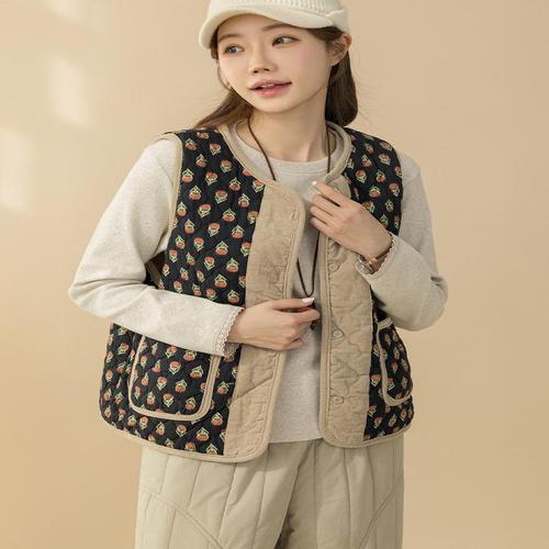 [끌레아]김장 촌캉스 조끼 꽃무늬 누빔 할머니 털 빅사이즈 엄마 기모