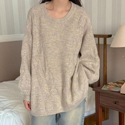 [옷자락]여자 빅사이즈 꽈배기 하찌 라운드넥 언발 가을 니트