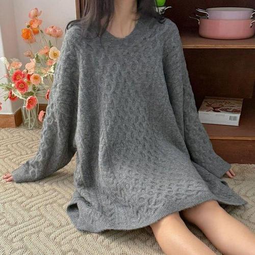 [다잇템]여자 스웨터 빅사이즈 꽈배기 와플 미니원피스