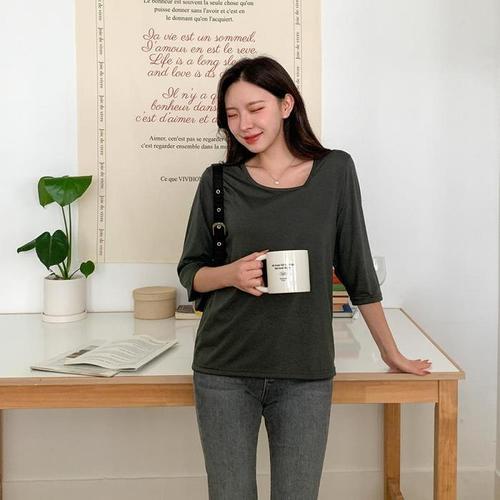 [다잇템]여자 빅사이즈 스판기있는 롱슬리브 U넥 티셔츠 (10943818A)