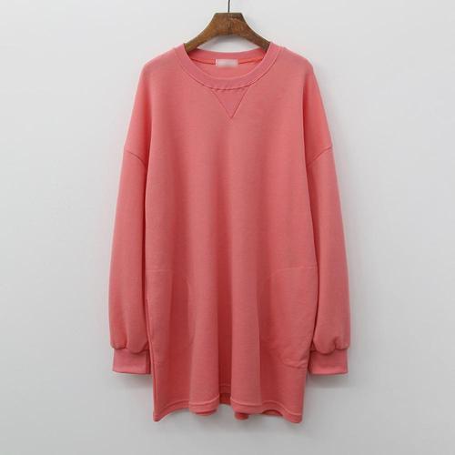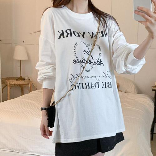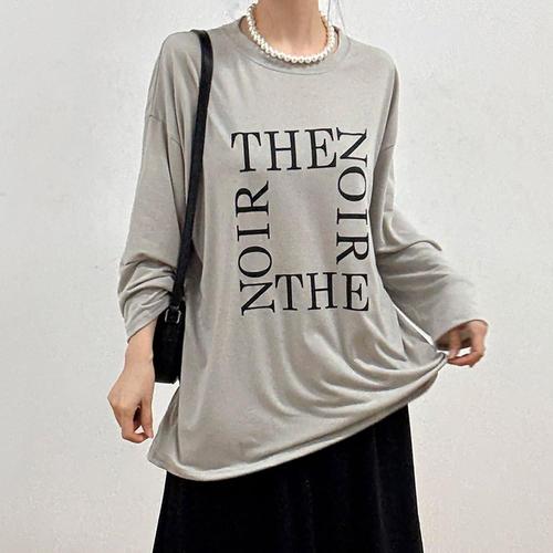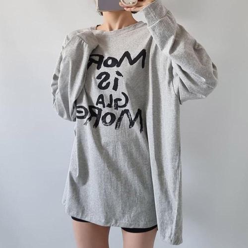 여성 빅사이즈 오버핏 라운드넥 롱 박스티 데일리 긴팔 티셔츠