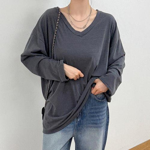 빅사이즈 601 브이롱슬리브박시티셔츠 DBAV327