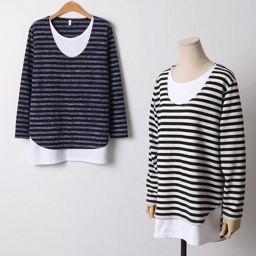 빅사이즈 601 이중배색줄지롱티셔츠 DMNF543