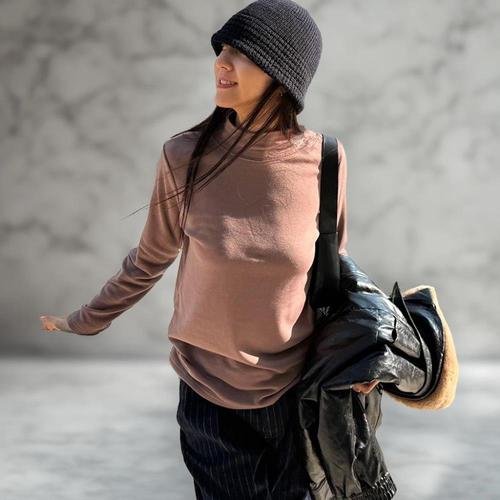 여성 의류 빅사이즈 기모 반폴라 목 폴라 티셔츠 오버핏 겨울 봄 폴라티 스판