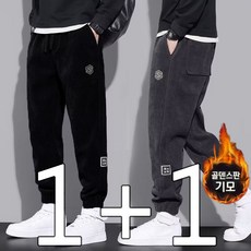 BIKASU 남자 기모 코듀로이 바지 빅사이즈 허리밴딩 트레이닝 조거 팬츠 1+1