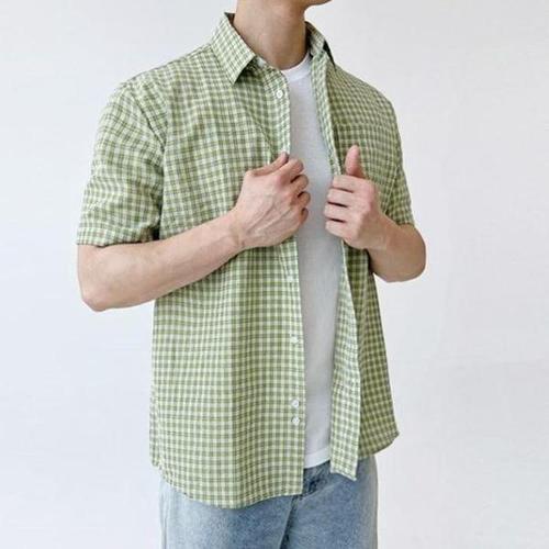 [다잇템_패션]남자 면원단 캐쥬얼 격자 빅사이즈 반소매 남방