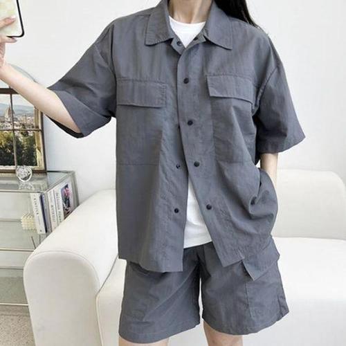 [다잇템_패션]여자 나일론 셔츠 빅사이즈 반소매 주머니 세트