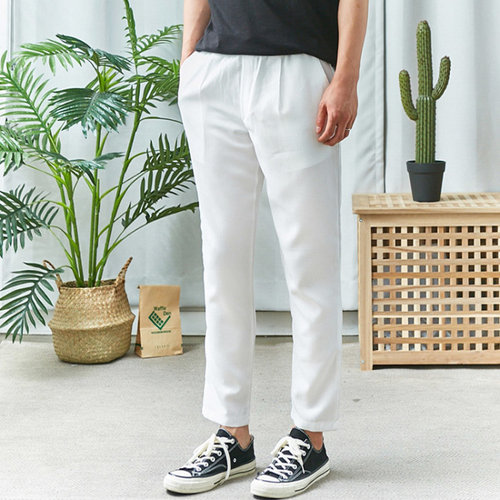 [엠클로]남자 빅사이즈 세미와이드 테이퍼드 여름 밴딩 원턱 쿨링 냉장고 9부 슬랙스 팬츠