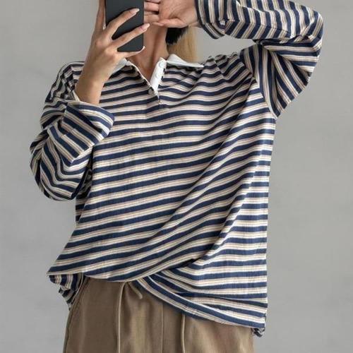 [다잇템][다잇템] 여성 롱슬리브 단가라 카라 콘트라스트 빅사이즈 티셔츠_22696390_588872