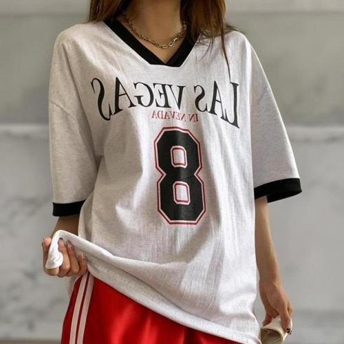 [다잇템][다잇템] 여성 반소매 필기체 콘트라스트 힙무드 빅사이즈 V넥 티셔츠_22737103_588872