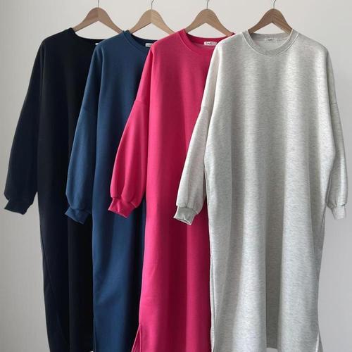 [미라클세븐]여성 빅사이즈 겨울 기모 포켓 임부 롱 원피스 밑트임