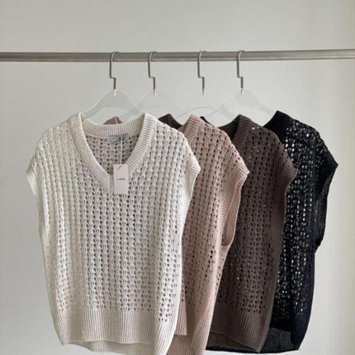 [애슬릿][애슬릿]여성 니트 조끼 베스트 봄 여름 브이넥 루즈핏 빅사이즈