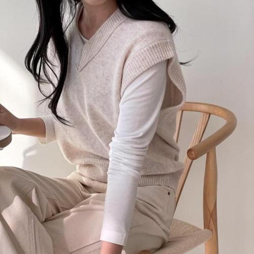 [다잇템]여자 베스트 수퍼파인울 V넥 빅사이즈 베스트 (13966716A)