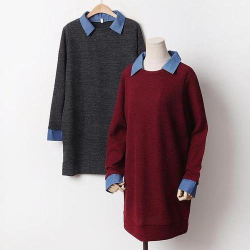 [셀러허브_여성트랜드패션]빅사이즈 601 가벼운데님카라롱니트 DMNB716