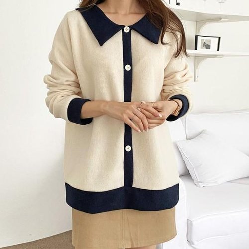 [다잇템][다잇템] 여성 색상 롱슬리브 카라넥 컷아웃 빅사이즈 레이어드 니트가디건_22736349_588872