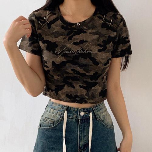 지고다그 여성용 여름 반팔 티셔츠 백리본 트임 디자인 슬림핏 크롭티 스트레치 캐주얼 상의 데일리룩 YZH72819