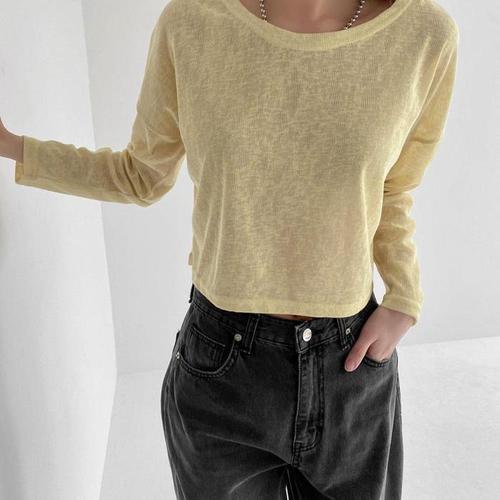 [다잇템]여자 노란색크롭 비침 빅사이즈 크롭 티셔츠 (13273385A)