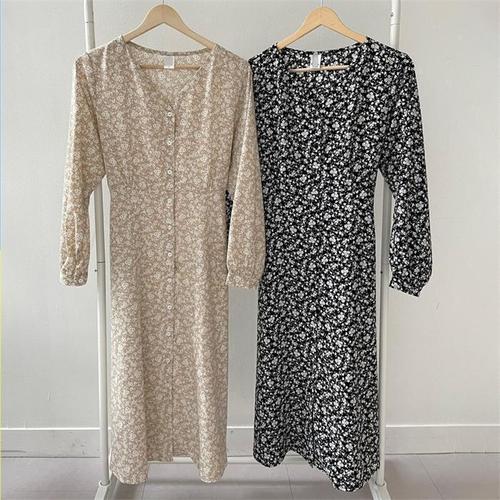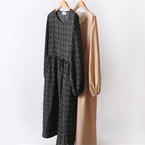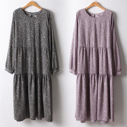 원피스 빈티지 캐주얼 봄 긴팔 빅사이즈 면마 여자원피스 프린트 플라워 이른 원템1