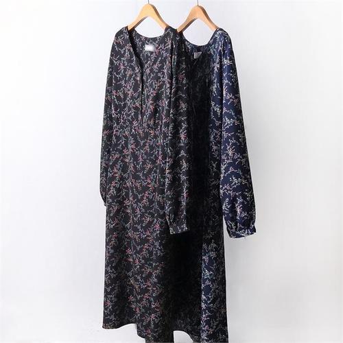 원피스 봄 캐주얼 빈티지 여자원피스 이른 빅사이즈 플라워 긴팔 면마 프린트 원템1