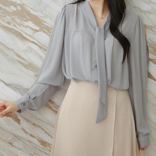 [신상오픈런]여성 하객 패션 리본 벨트 핀턱 빅사이즈 봄 블라우스