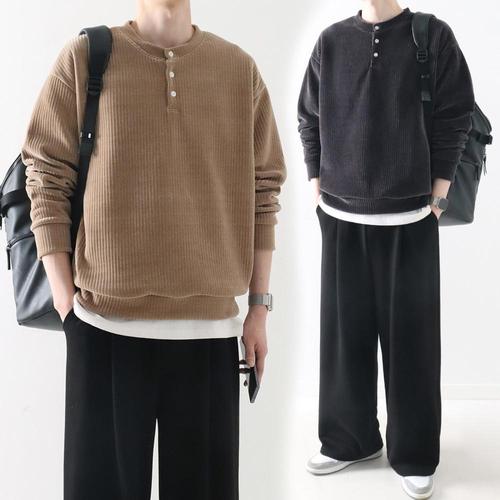 [엠클로]남자 빅사이즈 오버핏 헨리넥 긴팔 무지 니트 맨투맨