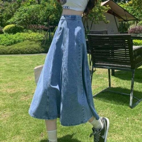 [셀럽하우스]데님스커트 MKOQ3382 베이직 청치마 A라인 빅사이즈 올데이 롱