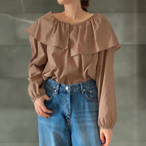 코디하기 편한 상큼 화사 비비드 프릴 이중 빅카라 소매 스모크 밴딩 긴팔 블라우스 데일리