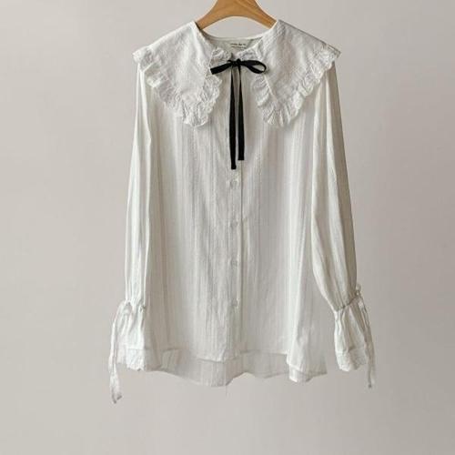 [신상오픈런]|KSH30A0|스태비 블라우스 여성 레이스장식 빅카라 셔츠 매듭 귀여운_18156924_597559