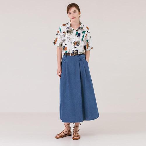 [막스까르띠지오][벨트세트]빈티지 A라인 데님 스커트