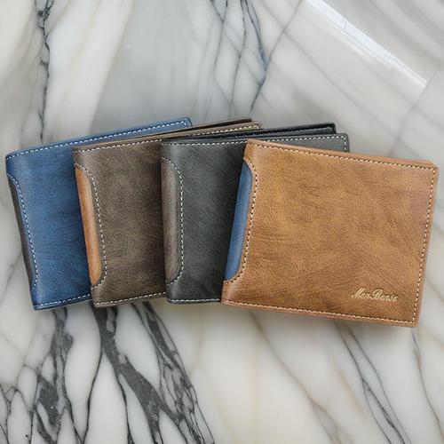 남성지갑 반지갑 빈티지 인조가죽 스티치 카드 지폐 동전수납