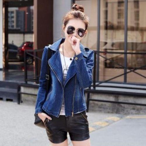 숏자켓 코디 여성 빈티지 데님 메탈 버클 라운드넥 디자인 캐주얼 슬림핏 숏 재킷 청자켓