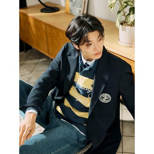 6258 빈폴 네이비 소매로고라이트차이나자켓 [100]