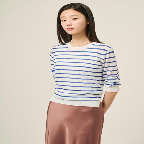 [빈폴레이디스]리넨 스트라이프 긴소매 풀오버 아이보리 (BF5451C040) .