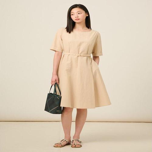 [빈폴레이디스]보트넥 반소매 핏 앤 플레어 원피스 베이지 (BF5471C07A) .