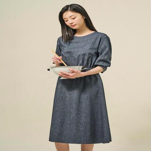 [빈폴레이디스]데님 라이크 라운드넥 볼륨 소매 원피스 네이비 (BF5371C03R) .