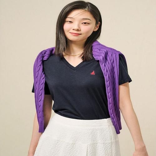 [빈폴레이디스][Essential] 솔리드 V넥 슬림핏 티셔츠 네이비 (BF5242E02R) .