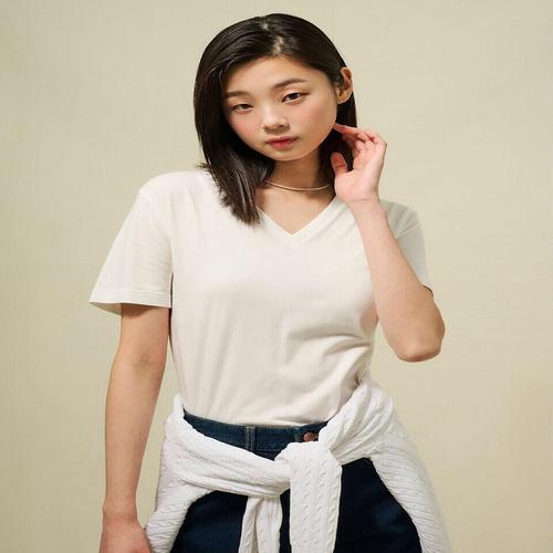 [빈폴레이디스][Essential] 솔리드 V넥 슬림핏 티셔츠 화이트 (BF5242E021) .