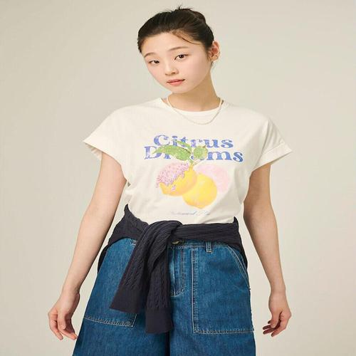 [빈폴레이디스]그래픽 캡 슬리브 루즈핏 티셔츠 화이트 (BF5542C031) .