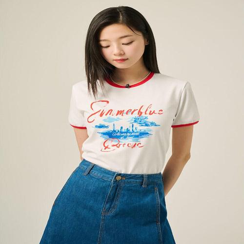 [빈폴레이디스]그래픽 반소매 링거 티셔츠 화이트 (BF5442C061) .
