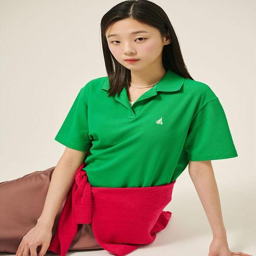 [빈폴레이디스]피케 밑단 스트링 반소매 T칼라 티셔츠 그린 (BF5442C04M) .
