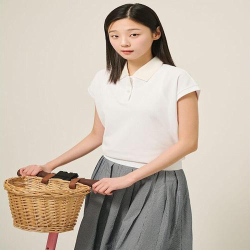 [빈폴레이디스]피케 캡 슬리브 반소매 T칼라 티셔츠 화이트 (BF5342C731) .