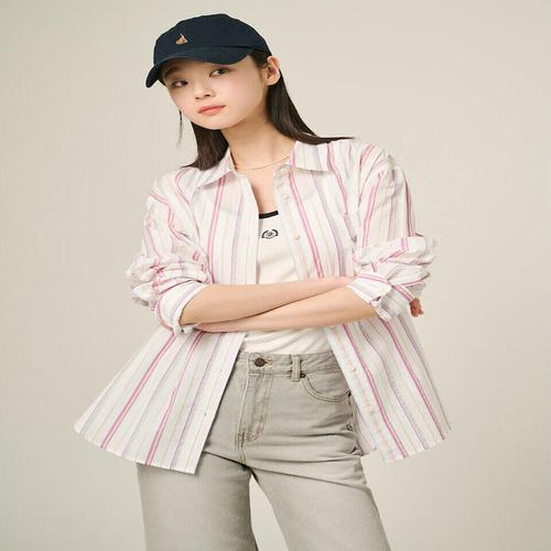 [빈폴레이디스]코튼 스트라이프 오버핏 셔츠 화이트 (BF5564C011) .