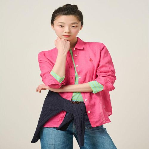 [빈폴레이디스][Essential] 리넨 솔리드 레귤러핏 셔츠 핑크 (BF5364E01X) .
