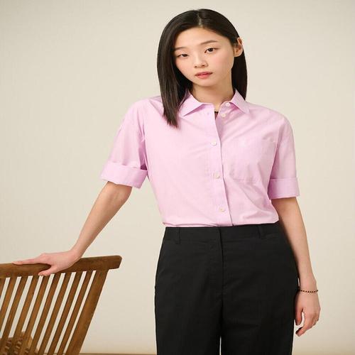 [빈폴레이디스] 코튼 혼방 깅엄체크 슬림숏 셔츠 라벤더 (BF6264C07T)