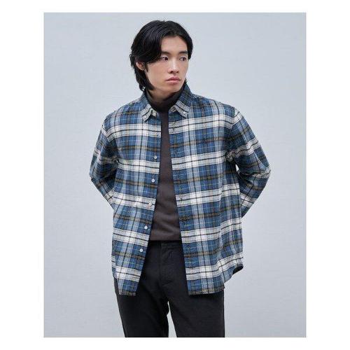 [빈폴멘]브러쉬드 변형 타탄 체크 셔츠 블루 (BC4964C35P) .