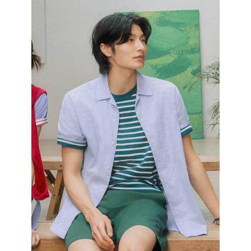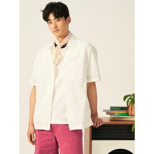 [빈폴멘]리넨 혼방 솔리드 오픈카라 반소매 셔츠 - 베이지 (BC5465C28A)
