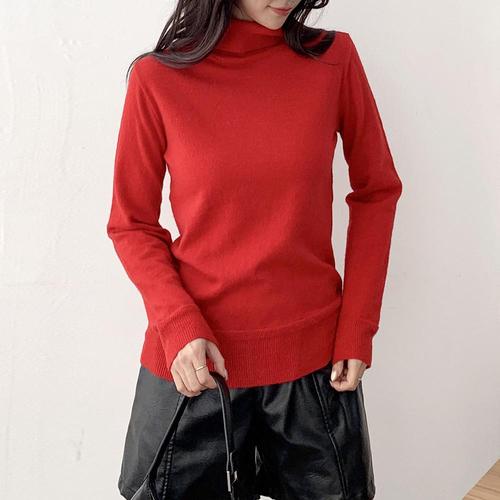 여성 빨간 스웨터 FW 롱슬리브 터틀넥 출근용